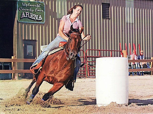 Dell was originally trained for rodeo events such as team penning, cattle roping, barrel racing and other speed events. Unfortunately, at age nine he suffered a shoulder injury and was unable to perform to his owners’ expectations. From there, he became a trail riding horse in southern Wisconsin. Dell was the Pape family’s first horse in 2003. The family quickly learned how intelligent Dell was. He loves structure and routine. His calm, easy-going nature he makes it easy for riders to participate in games and exercises. He is extremely well disciplined and a trained athlete who still holds a competitive edge in his every day encounters. Dell’s slow steady gait and sturdy build makes every rider smile! He loves to work for his treats and is also used to introduce riders and new volunteers to grooming skills and basic horse care. We are proud to have him on our therapy horse team since our pilot program in 2007.